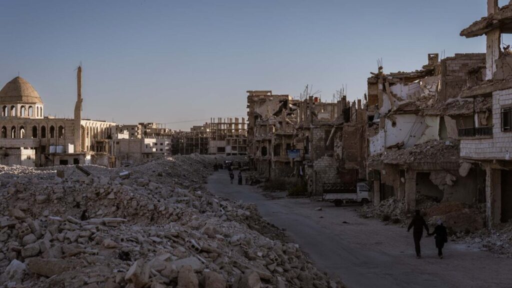 Una vista de Tadamon en Damasco, Siria. Grandes partes del barrio fueron destruidas por los intensos combates durante la guerra. Imagen: Emin Sansar/Anadolu vía Getty Images.